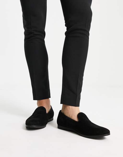 Truffle Collection faux suede slip on loafers in black ASOS