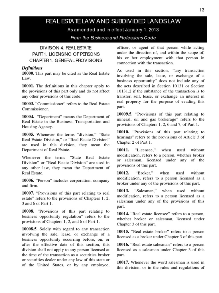 REAL ESTATE LAW AND SUBDIVIDED LANDS LAW Lease Loans